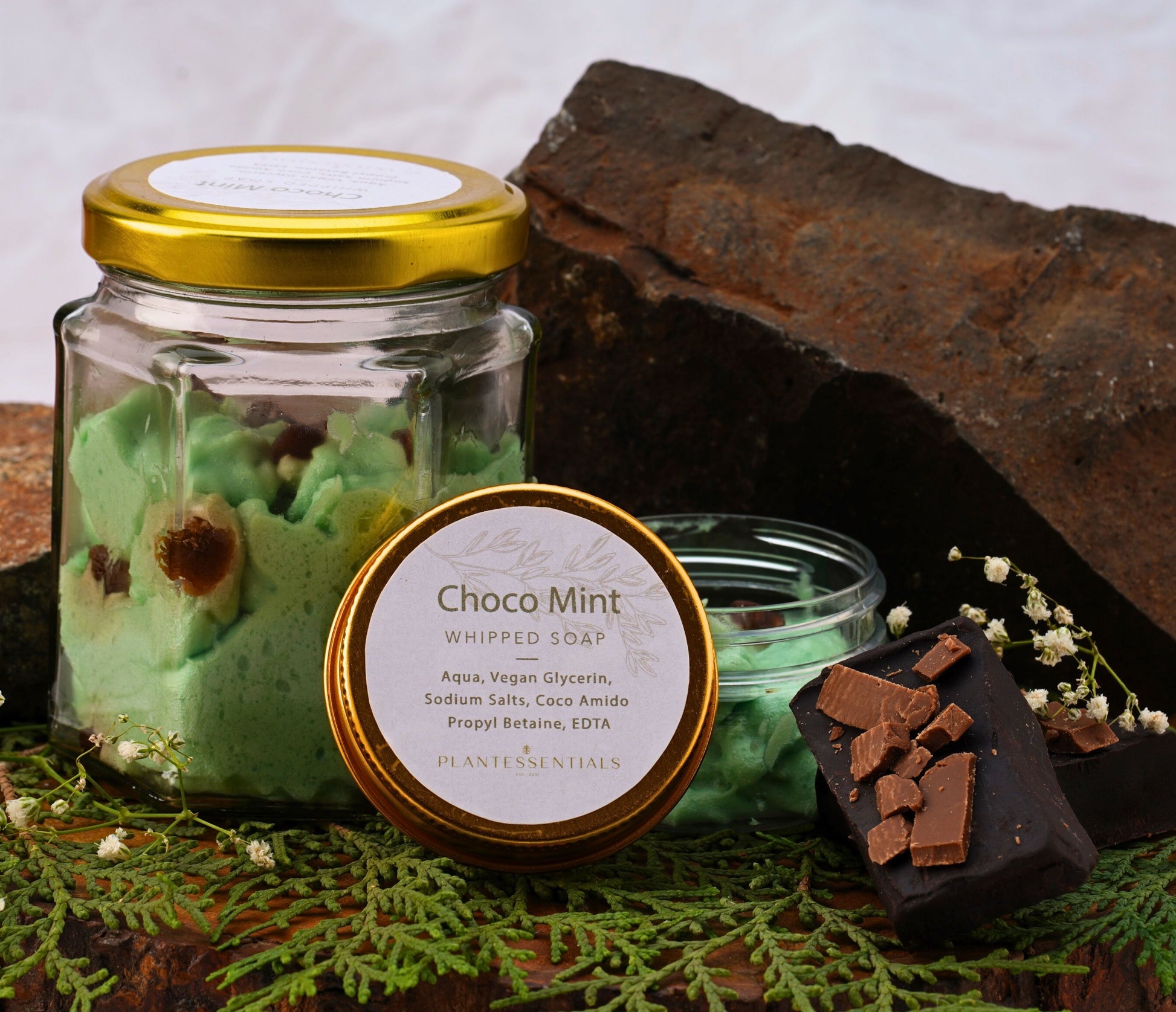 To eat or not is the question! It actually looks like a choco mint ice cream. It is beautifully designed mint coloured whipped soap with chocolate and mint fragrance. Very much moisturising and most kind to skin. Good for kids too. Best for gifting. All in one soap i.e. face wash, body wash, hair wash and hand wash too. Best for travelling as it doesn't get spilled out!