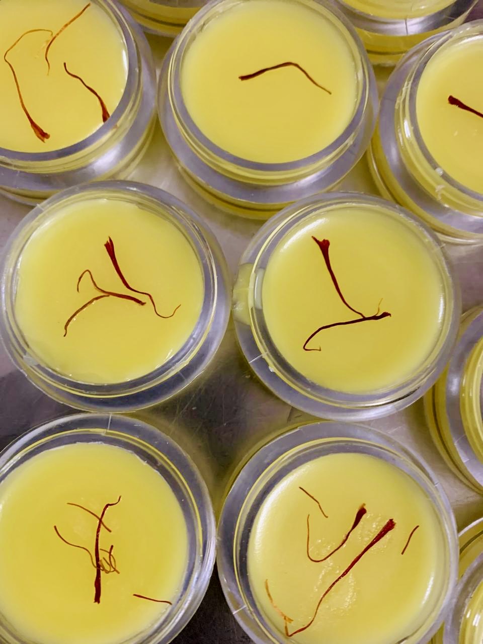 pure Desi Gir (A2) cow Ghee, Saffron essential oil, Rose essential oil, real saffron strands, Almond oil, coco butter, bees wax etc .
