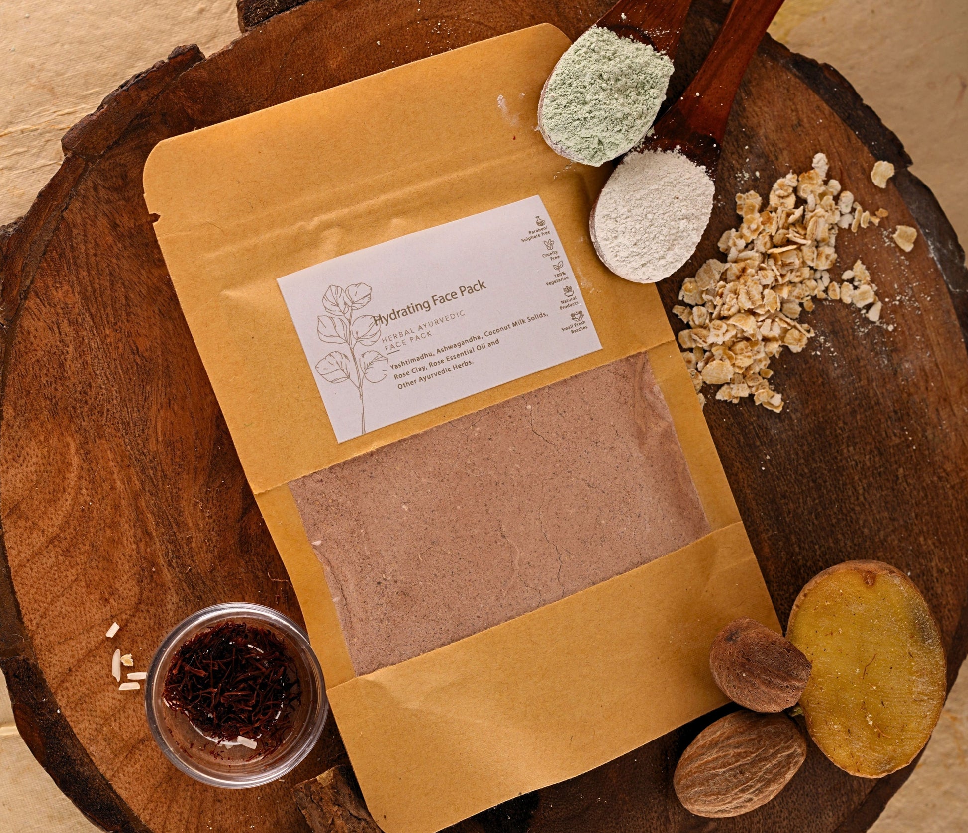 Get a lustrous smooth skin with our Hydrating Face Pack. 100% natural, packed with hydrating, skin soothing Ayurvedic herbs, natural clays, natural ingredients and essential oils. Useful for sensitive dry skin too.
