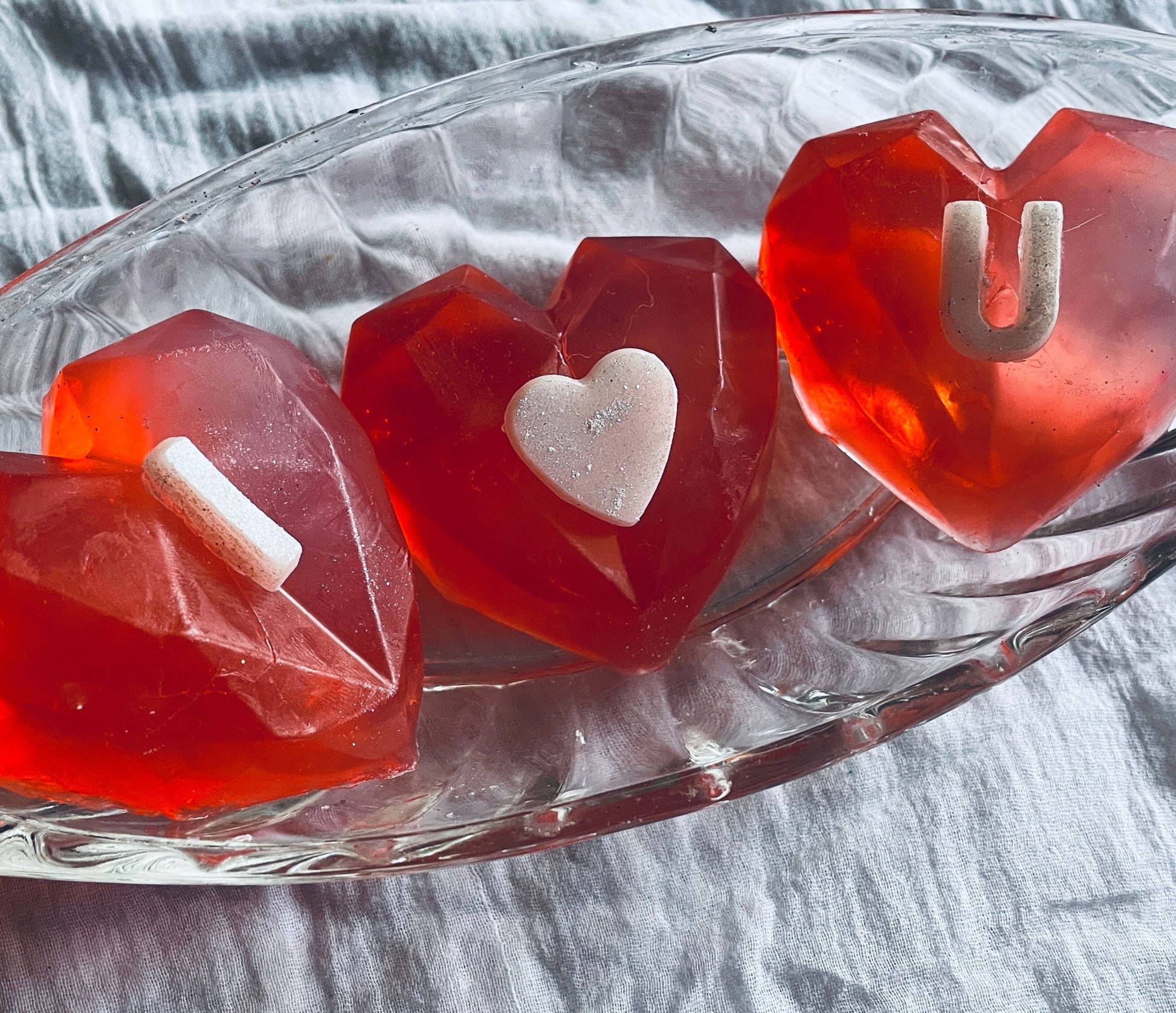 Indulge in the intoxicating scent of love with our Valentine's Wine Heart Soaps. Made with red wine extracts, this set of 3 soaps not only adds a romantic touch to your bath routine, but also provides nourishing benefits for your skin. Treat yourself or your loved one to a luxurious experience with these heart-shaped, wine-infused soaps.